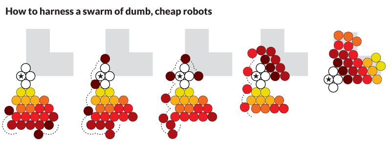 ALL TOGETHER NOW With a simple set of instructions, these Kilobots can assemble and form different shapes, without human intervention.
