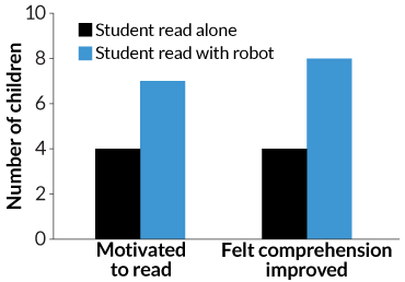 Roboticist Bilge Mutlu and learning researcher Joseph Michaelis randomly assigned 24 students ages 10 to 12 to either two weeks of reading aloud alone or with Minnie. Afterward, the solo readers gave the activity more mixed reviews, reporting, for example, “I didn’t not like it, but I didn’t, like, really enjoy it.” Only four said the activity motivated them to read more. Kids in the robot group said reading to Minnie was “fun” and “a cool experience.” Seven students said they felt more motivated to read.