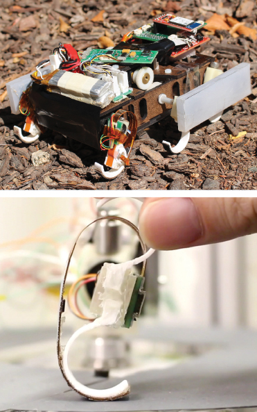 Fixed to each of its six C-shaped legs are tactile sensors that can tell how hard the robot hits the ground. Most robots don’t have tactile sensing on their feet, Wu says. “When I first got into this, I thought that was crazy. So much effort is focused on hands and arms.” But feet make contact with the world too.