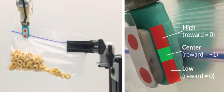 Two deformable finger pads pinch the blue seal with steady pressure (the enclosed Cheerios barely tremble) as the robot slides its hand slowly along the plastic zipper. After about two minutes, the fingers reach the end, closing the bag. It’s deceptively difficult. The bag’s shape changes as it’s manipulated — tough for robotic fingers to grasp. It’s also transparent — not easily detectable by computer vision.