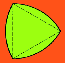 One way to draw a Reuleaux triangle is to start with an equilateral triangle, which has three sides of equal length. Draw three arcs of circles, with each arc having as its center one of the triangle’s corners and as its endpoints the other two corners. The resulting “curved triangle,” as Reuleaux termed it, has a constant width equal to the length of the interior triangle’s side.