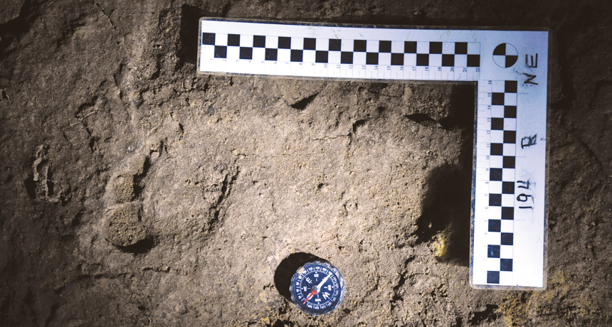 GOOD IMPRESSION Human footprints such as this, found in a Romanian cave almost 50 years ago, are much older than originally thought, dating to around 36,500 years ago, a new study finds.