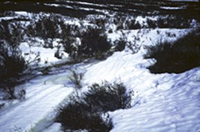 Snow depth was at its greatest at the Alaskan test sites in April 2001. At sites where grasses and short, supple shrubs were prevalent, the vegetation was bent to the ground with the weight of the overlying snow, and the albedo was about 85 percent. At the site where tall, stiff shrubs predominated—and where only 1 percent of the shrubs stuck up through the snow—the albedo was equally high, says Sturm. But at the woodland site, where shrubbery still above the snow covered about 10 percent of the test plot, the albedo was only 60 percent.