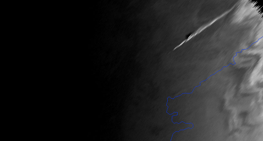 SATELLITE'S-EYE VIEW A European weather satellite captured an image of the supersonic meteor as it penetrated the Earth’s atmosphere over Russia the morning of February 15. The meteor damaged buildings and caused an estimated 1,200 injuries.