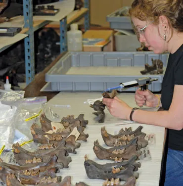 Pack living would enable this slower development: “If you’re a social species, you can afford to grow at a slower rate than a nonsocial species because you have a family safety net,” Reynolds says. She is studying Smilodon fossils from Peru’s Talara tar pits for evidence of slow bone development using bone histology, examining thin cross sections under a microscope to determine such things as age and growth rate.
