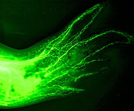 Tanaka and her colleagues genetically engineered a type of salamander called axolotls to make a green fluorescent protein in all cells of the body. This GFP allows the researchers to visually trace the fate of cells during regeneration. The researchers then transplanted muscle, skin, cartilage or nerve tissues from GFP-producing axolotls into embryos that do not make the glowing green protein. Animals that grew from the engineered embryos made GFP only in the transplanted tissues. The researchers then amputated one of the animal’s limbs and watched to see where GFP would appear in the regenerated appendage.
