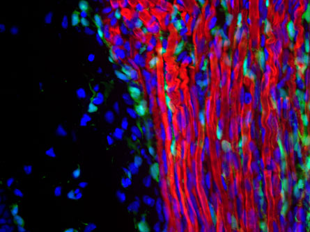 But the researchers saw that only the tissues that made GFP in the old limb glowed green in the new leg. “It’s clear that the cells that came from muscle only became muscle in the end,” Tanaka says. “We don’t see any evidence of a pluripotent cell.”