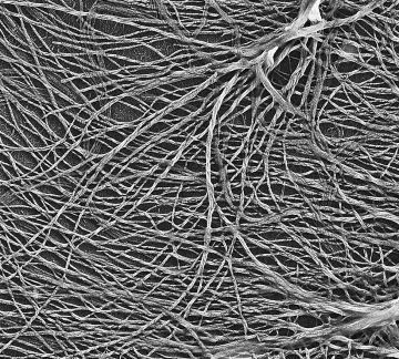 ANCIENT ROPES. This mat of small cellulose fibrils, each between 5 and 16 nanometers across, was extracted from 253-million-year-old salt deposits in New Mexico and includes the oldest intact biological macromolecules yet isolated and analyzed.
