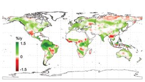 Although the concentration of carbon dioxide in Earth’s atmosphere rose about 9 percent during that period, not all of the extra greenery stemmed from that gas’ fertilizing effect. For example, large swaths of India received extra rainfall in the 1990s from that decade’s strong monsoons, says Nemani. Also, decreased cloud cover over Amazonian rain forests enabled the trees there to slurp up 5 billion more metric tons of carbon dioxide in 1999 than they did in 1982.