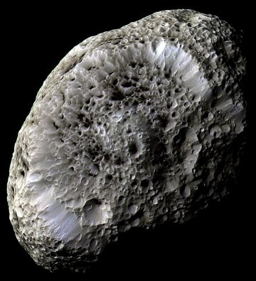 Cassini snapped this image of Hyperion, which has a diameter of 266 kilometers, on Sept. 26 as the spacecraft swooped within 500 km of the moon, the closest that the probe is expected to come during the 4-year mission.