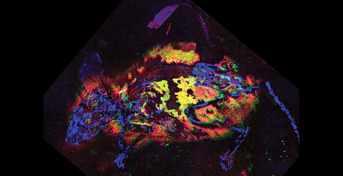 An ancient mouse bears the first identifiable chemical traces of difficult-to-detect pheomelanin, the pigment responsible for reddish-brown fur (SN: 6/22/19, p. 14). X-ray spectroscopy revealed red to brown fur (yellow areas) on the mouse’s back and sides.