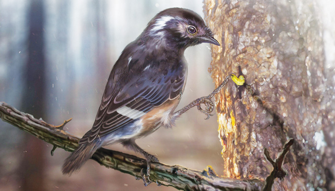 A chunk of amber containing the right leg and foot of a sparrow-sized bird (illustrated) revealed a bizarrely long digit. The bird may have used the toe to feel around for food in hard-to-reach places (SN Online: 7/11/19).