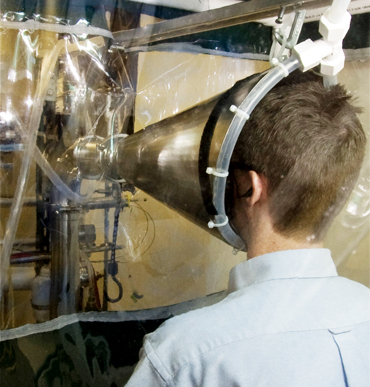 The C.A.T.C.H. study aims to find out if what’s in the air is catching. In two University of Maryland dorms, carbon dioxide sensors measure how much of the air comes from people’s exhalations. In addition, laboratory tests measure how much virus sick students are shedding into the air. To get those samples, students sit in a ticket booth‒sized contraption called the Gesundheit-II and breathe into a giant cone. These data can help researchers estimate students’ airborne exposure to viruses, Milton says.