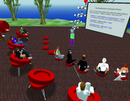 SL is largely known for its recreational and business activities. But it’s increasingly becoming a world where scientists and educators go to get down to real science. After starting out as a handful of individual efforts, SL’s SciLands has grown into a mini-continent with 45 simulated islands or “sims.” More than 300 universities and museums now maintain a presence in SL, as do an alphabet-soup list of organizations such as NASA, NOAA, ACS and the CDC.