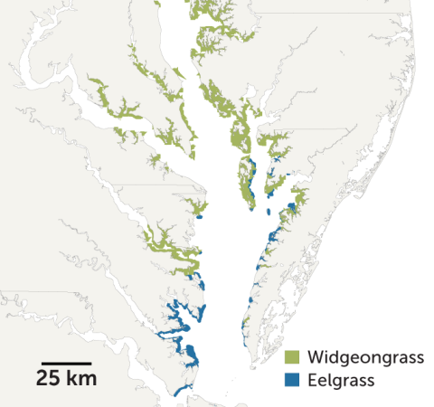 To some extent though, widgeongrass “is making up for the loss of the eelgrass,” Duffy says. To the researchers struggling to restore the Bay’s vegetation, the expansion of widgeongrass qualifies as a win. “When environmental conditions change, species that were always there may step up, change their roles, and do something really positive for the Bay,” Patrick says.
