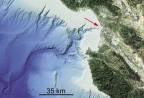 Seawater typically is about 2.5 percent more dense than fresh water, so a river’s flow usually spills across the top of the ocean as it travels away from land. Normally, the river waters mix with the ocean to form a brackish blend, and any sediments carried by the flow settle out in shallow water to form the river’s delta. However, scientists studying California’s Monterey Bay have recorded five instances in the past dozen years when mud-choked swirls of unusually warm river water swept along the bottom of the bay at depths of nearly 1 kilometer.