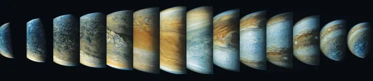 CLOUD TOWERS The tiny white spots in this image of Jupiter’s south tropical zone, taken May 19, 2017, by NASA’s Juno spacecraft, are actually towers of clouds composed of ammonia ice and, perhaps, water ice. Located high in Jupiter’s atmosphere, these towers can stretch about 50 kilometers wide and reach roughly 50 kilometers tall.