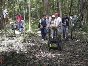 Radar has proved its worth in the jungle as well. Julie A. Aitken of the University of Calgary in Alberta and her colleagues have used radar carts to probe beneath the forest floor at the ancient Maya site of Maax Na, discovered in Belize in 1995. The site was probably occupied from about 350 B.C to A.D. 300, says Aitken. Large aboveground structures, including stone temples, administrative buildings, and pyramids, surround a 100-m-by-150-m plaza, some of which has been thoroughly overgrown by the jungle.
