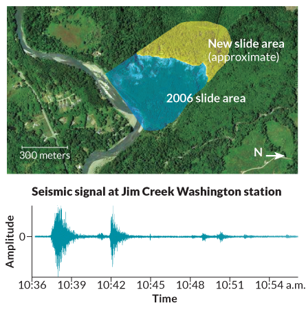 LANDSLIDE SHOCK A landslide on the North Fork of the Stillaguamish River outside Oso, Wash., on March 22 generated seismic waves like those unleashed during an earthquake.