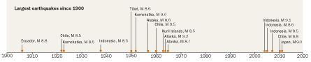 Japan’s catastrophic March 11 earthquake was the biggest ever recorded in Japan and the costliest natural disaster in history, but in a way it was nothing new. Three other quakes of magnitude 8.6 or greater have struck worldwide in the past seven years — after a gap of four decades.