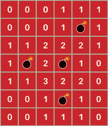 Ghrist likens the counting problem to that faced by players of Minesweeper, a popular computer game in which land mines are hidden in certain squares of a grid. Clicking on a square displays the number of mines in adjacent squares, unless the square itself hides a mine, in which case the player has lost the game.