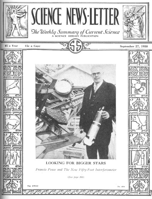 After 8 years of preparation, the 50-foot interferometer at the Mt. Wilson Observatory in California has been completed. Francis G. Pease, who used the smaller one, 20 feet in length, designed the new instrument and supervised its construction.