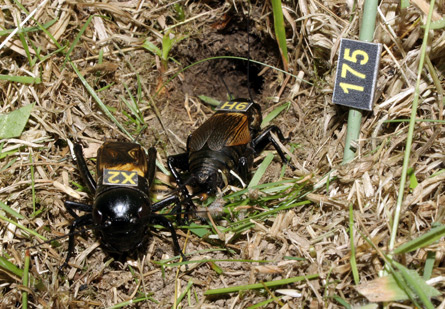 Using 64 infrared-sensitive, motion-detecting video cameras, researchers kept watch over all the cricket burrows in a meadow day and night. The researchers also tagged all adult crickets in the population and recorded the male’s calling songs. The University of Exeter team used the captured footage to study mating, fighting and other behaviors, and then looked at the number of offspring each adult cricket produced. The project was designed to see how natural selection and sexual selection theories developed from experimental studies of crickets in the lab play out in the wild.