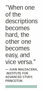 The power of the string—particle duality, Maldacena says, lies in the fact that one can frame a problem in whichever mathematical language makes it easier to solve.