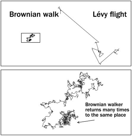 Biologists had long thought that animal foraging was dominated by random walks. But in 1996 a team led by Viswanathan reported that wandering albatrosses, fitted with radio-tracking devices, made the occasional long flight that is the hallmark of a Lévy pattern.