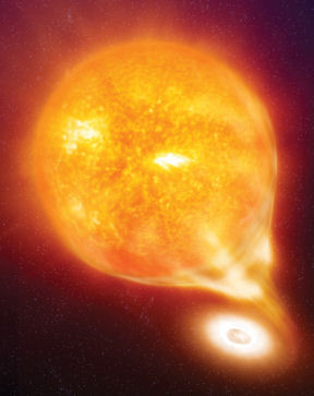 According to a widely accepted model, the stage is set for a type 1a supernova when a dense, Earthsize star called a white dwarf steals gas from a bloated companion star. When the gas-guzzling white dwarf tips the scales at more than 1.4 times the mass of the sun, it blows to smithereens.