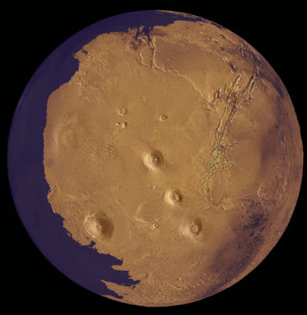 RED PLANET, BLUE OCEAN. Mars as it might have appeared more than 2 billion years ago.