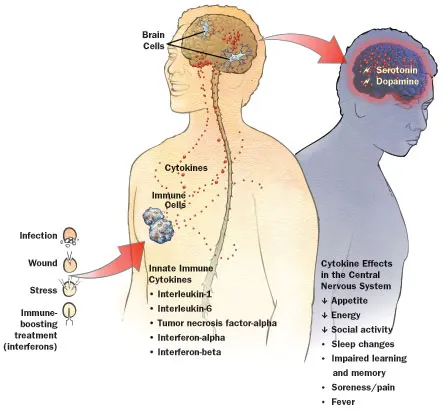 To fight off an infection or illness, the body shifts into a slow-down mode that mirrors some symptoms of depression. In fact, scientists now think the immune response itself may even cause the mood disorder.