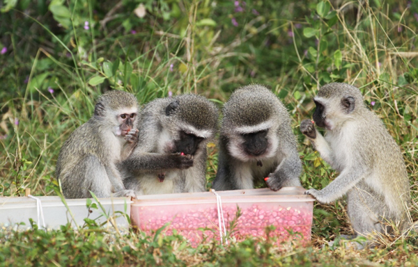 To gauge the role of social learning in wild animals, Whiten’s team trained four groups of vervet monkeys living in a South African game preserve to eat either blue or pink corn and despise corn of the other color. Whiten and colleagues did this by soaking one type of colored corn in an aloe solution that the monkeys found disgusting.