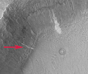 Both the colors and shapes of the newfound streaks indicate a watery flow similar to a mudslide, assert Malin and his collaborators at Malin Space Science Systems in San Diego. The bright color could be either frost or a salty crust deposited by water, they suggest. The features weren’t caused by sliding dry dust, the researchers say, because that would have exposed dark patches of subsoil, as rovers have done on Mars.