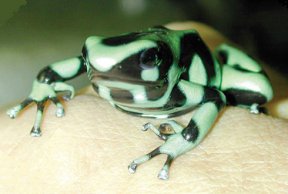 At least three species of the 4-to-5-centimeter-long Dendrobates frogs of the New World tropics modify an alkaloid to create one that’s about five times as poisonous, according to a team led by John W. Daly of the National Institute of Diabetes and Digestive and Kidney Diseases (NIDDK) in Bethesda, Md. The souped-up poison, one of a class called pumiliotoxins, ends up as a protective agent in the frogs’ skin, the researchers report in an upcoming Proceedings of the National Academy of Sciences.