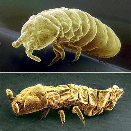 Using a hand-built gene chip that catalogues thousands of Arctic springtail genes, the researchers found genes that were active in the shriveled, dry animal and genes that were active after the animal had just rehydrated. Clark says the experiments turned up many of “the likely suspects,” genes whose products help protect cells from damage under extreme conditions.