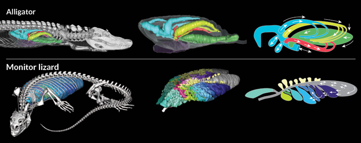 Finding one-way airflow in such diverse reptiles supports Farmer’s original notion that something was missing in the story of lung evolution. Alligators, monitor lizards and green iguanas — unlike birds — don’t fly and don’t rev up frantic metabolic rates to maintain a constant, warm body temperature. So, contrary to accepted thinking, perhaps unidirectional airflow is also important for the cold and slow lifestyle.