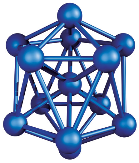 Small numbers of atoms often form structures as symmetrical, and almost as intricate, as those of snowflakes. But while no two snowflakes, even if they have the same number of water molecules, are identical, a small, specific number of atoms of the same element typically will assemble into the same, specific shape. The quintessential example is how 60 carbon atoms form buckyballs. Metal atoms such as gold, aluminum or tin also like symmetry. For example, 20 atoms of gold will assemble into a solid pyramid, but 16 will form cage-like structures, as Lai-Sheng Wang, a physical chemist at WashingtonStateUniversity and at the Pacific Northwest National Laboratory in Richland, Wash., and his collaborators have discovered in recent years (SN: 5/20/06, p. 308).