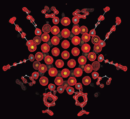 Kornberg has another application in mind. His specialty is figuring out the exact structure of proteins and other complex biomolecules. “We have devoted decades to solving one structure,” Kornberg says, referring to his work on the crucial enzyme RNA polymerase, for which he earned the 2006 Nobel Prize in chemistry. Superatoms could speed up the process dramatically. The idea is to attach superatoms at specific sites on biomolecules in solution, then flash freeze the superatoms and put them under the electron microscope. Because their shapes are precisely known, the superatoms would act as signposts, forming reference frames around each biomolecule. Computer processing of the electron-microscope data could then pinpoint the exact position of each atom in the biomolecule, producing an image of its structure, Kornberg says.