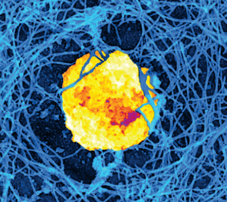 Natural killer cells are caught in the act of feeding poison pills (below) to tumors.