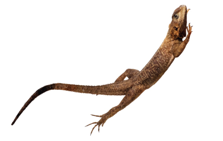Videos and robots show how reptiles use their tails to balance in midair. See “Measuring the leap of a lizard.”