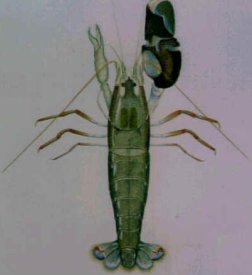 About 6 centimeters long, snapping shrimp of one of the largest species, Alpheus heterochaelis, makes a resounding whomp when it shuts its oversized claw. Science