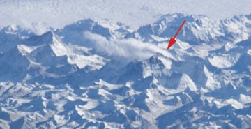 Moore dismisses the possibility that the plume was a so-called banner cloud, a type that sometimes develops on the lee side of tall peaks. Banner clouds typically form in summer months, and also weather conditions on the day the picture was taken probably wouldn’t have produced a banner cloud at Mount Everest’s altitude of more than 8,800 meters, he says.