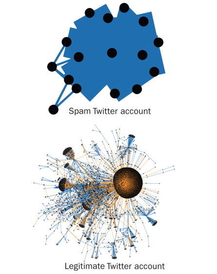 After Republican presidential candidate Mitt Romney’s Twitter account acquired 141,000 followers in two days in July, many suspected the new followers were fake. Devin Gaffney and Alexander Furnas, then at the University of Oxford’s Internet Institute in England, decided to investigate the followers by looking at the followers’ followers.