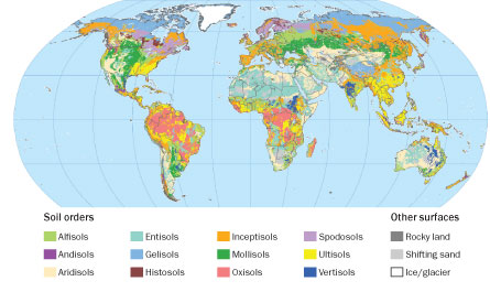 During a visit to her campus office, she pulled up a map on her computer showing the global distribution of soil types. It looked bewilderingly complex, covered in soil groups with names such as alfisols, common in forests, and histosols, found in peat bogs. But the map was a simple version; each group has multiple suborders such as, for alfisols, the cryalfs formed at high altitudes and in other cold regions or the aqualfs formed in warm, wet regions.