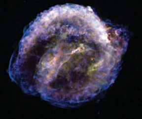 TYPECASTING. X-ray portrait of the remnant of Kepler’s supernova reveals that the stellar explosion was type 1a, meaning it started as a white dwarf. Reynolds, et al., NASA, CXC