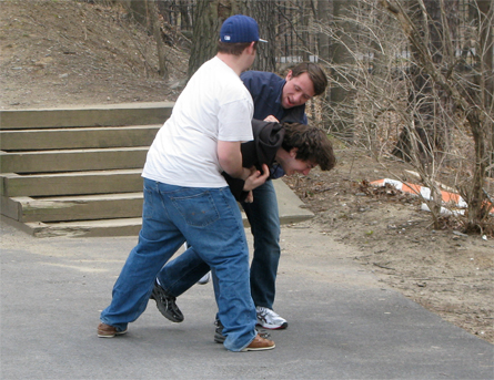 In the new investigation, students jogged 9 meters behind a runner on a 400-meter path while counting how often the runner touched his head. Along the way, two men shouted, grunted and pretended to beat up a third man in a driveway 8 meters off the path.