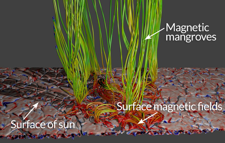 Surface energy ripples up the ‘tree’ trunks and heats the corona, new study suggests