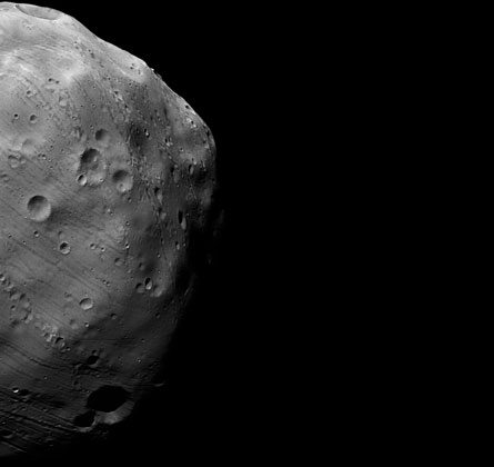 The Mars Express flybys, which happen every five months, may also determine if Phobos is a fragile pile of rocky fragments stuck together — what planetary scientists refer to as a rubble pile — or solid through and through, says Mars Express scientist Gerhard Neukum of the Free University of Berlin. He notes that due to orbital maneuvers that had to be performed on relatively short notice, scientists missed the opportunity to take even higher-resolution images with another camera on Mars Express, which would have revealed features on Phobos as small as a meter across.
