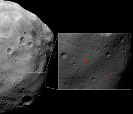 Some of the new images taken March 7 during one of several recent close flybys of the moon home in on the proposed landing site for a Russian mission, Phobos-Grunt (meaning Phobos soil), that is expected to launch next year.